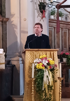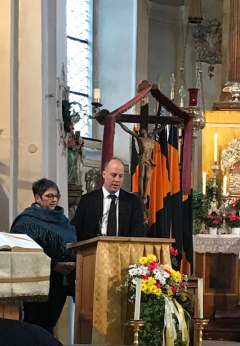 Zelebrant war Bezirkspräses Msgr. Walter Waldschütz, der zu seiner Freude den Landes- und Diözesanpräses Christoph Wittmann, den Präses der örtlichen Kolpingsfamilie Peter Demmelmair, die Geistliche Leiterin Pastoralreferentin Maria Thanbichler und den zweiten Bürgermeister der Stadt Bad Tölz, Herrn Michael Lindmair, begrüßen konnte.