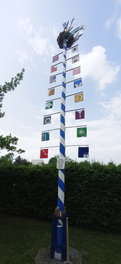 Nach dem ersten Maibaum von 2016 und dem Friedensbaum im Zeichen des Angriffskrieges gegen die Ukraine von 2022 erstrahlt nun der neue Maibaum im Pausenhof der Schule. Dieser wurde mit leichter Verspätung im Rahmen eines Schulfestes am 23. Mai feierlich aufgestellt. Ein Dutzend kräftiger Lehrer wuchteten den Baum mit den neuen Schildern unter Zuhilfenahme der traditionellen Schwalben in die gewünschte Position. Nachdem diese teambildende Erlebnispädagogik erfolgreich beendet war, eröffnete Schulleiterin Andrea Garufo das Maibaumfest 2023. Bei traumhaftem weiß-blauem Himmel genossen die anwesenden Schülerinnen und Schüler sowie Lehrkräfte die Schönheit des neuen Baumes.