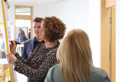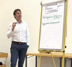 Das analytische und interaktive Großgruppenformat von Organisationspsychologin Tina Klügel stand unter der Überschrift „So bleiben wir gemeinsam besser!“. Hier beschäftigten sich die Teilnehmerinnen und Teilnehmer insbesondere mit Verbesserungen und Projekten, die sie sich für die Zukunft wünschen. Fazit: Das „Besondere“ an der Kolping Akademie ist die familienfreundliche Atmosphäre, das herzliche Miteinander und die Tätigkeit in einem gesellschaftlich relevanten Bereich, Stichwort „Sinnhaftigkeit der Arbeit.“