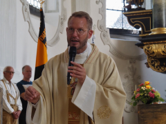 Startschuss war ein gemeinsamer Gottesdienst in der Pfarrkirche St. Margaret, die Diözesanpräses Christoph Wittmann zusammen mit dem Ortspräses Herbert Walter zelebrierte. Johannes der Täufer, dessen Fest auf diesen Samstag fiel, wäre sicher auch ein Kolpinger gewesen, hätte es den Verband damals schon gegeben. Mit seinem Verweis auf Jesus Christus und sein aktives Wirken gegen die sozialen und gesellschaftlichen Nöte der Zeit, rief er die Menschen dazu auf, sich dem Glauben zuzuwenden.