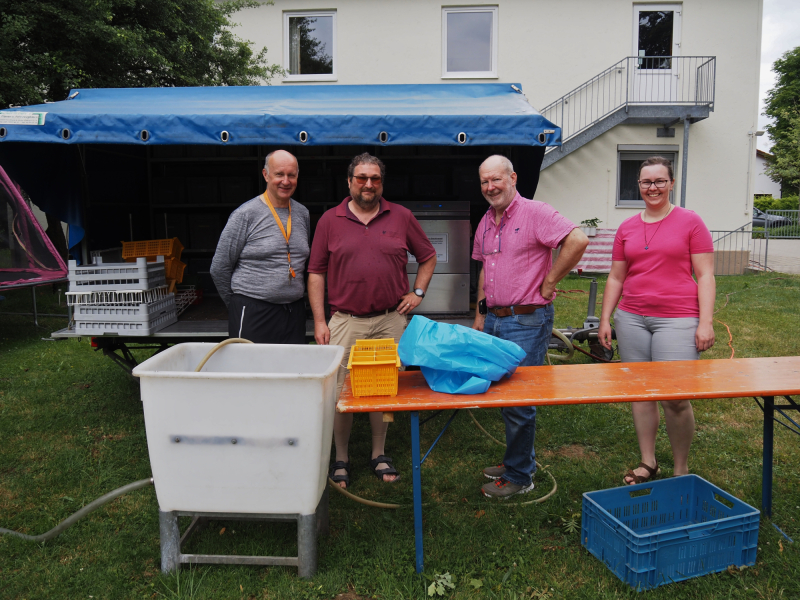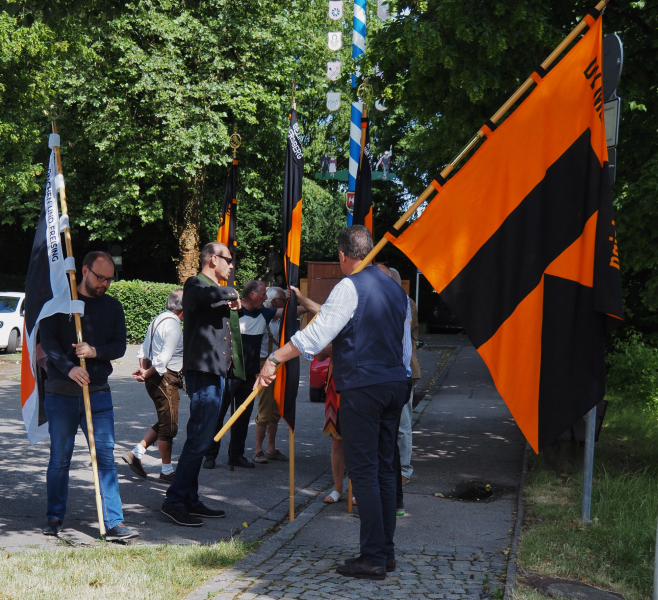 Nach dem Gottesdienst, den viele Banner der Kolpingsfamilien umrahmten, erwartete die Teilnehmerinnen und Teilnehmer ein Sektempfang im Garten des Kolpinghauses. Nach der Begrüßung durch Diözesanvorsitzenden Karlheinz Brunner und einer musikalischen Einstimmung durch die Hinum-Herum Musi aus Staudach-Egernd wurde gemeinsam zu Mittag gegessen.