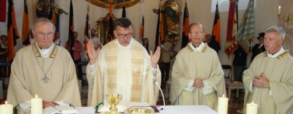 Zu den Konzelebranten zählten der emeritierte Weihbischof Bernhard Haßlberger, Diözesanpräses Christoph Wittmann, Ortspfarrer Martin Straßer und sein Bruder Monsignore Wolfgang Huber.