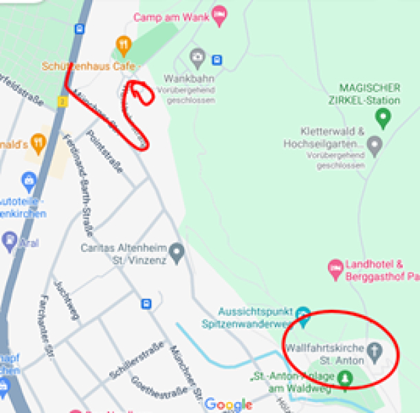 Anfahrt mit dem PKW: von der B2 aus München kommend, die Abzweigung an der ersten Ampel nehmen, links zur Wankbahn Talstation.