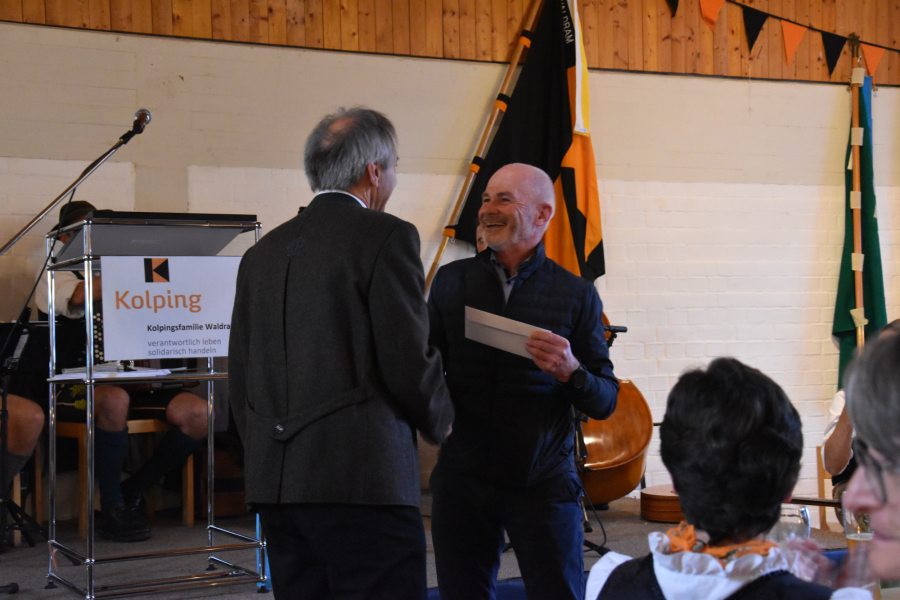 Für das leibliche Wohl der Gäste war mit einem Buffet mit kalten Speisen und Brot gesorgt, das Lothar Engel am Morgen im Holzofen der Kolpingsfamilie gebacken hatte, anschließend mit Nachspeisen und Kuchen. Zwischendurch überreichten einige Kolpingsfamilien und auch die Schützen der Stoarösl den Gastgebern Geburtstagsgeschenke.