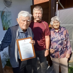 Die beachtliche Zahl von 70 Jahren Mitgliedschaft hat Fritz Wanner bei der Kolpingfamilie Aschau erreicht. Als Dank für diese außerordentliche Leistung überreichte erster Vorstand Hans Berghammer zusammen mit Richard Goßner eine Ehrenurkunde.