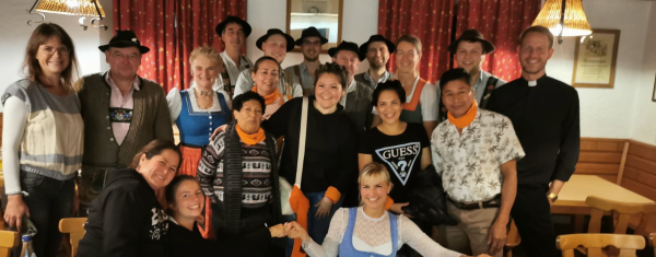Der Begrüßungsabend im Kolpingheim Mittenwald bei Leberkäse und einem Banzen Bier wurde musikalisch untermalt von der Kolpingjugend. Die ehemalige Ecuador-Freiwillige Isabel fungierte als Dolmetscherin. Bier, Musik und Tanz ließen eine familiäre Stimmung aufkommen.