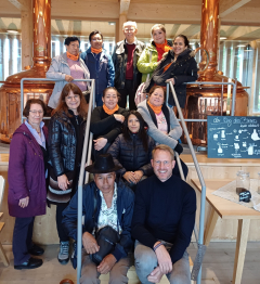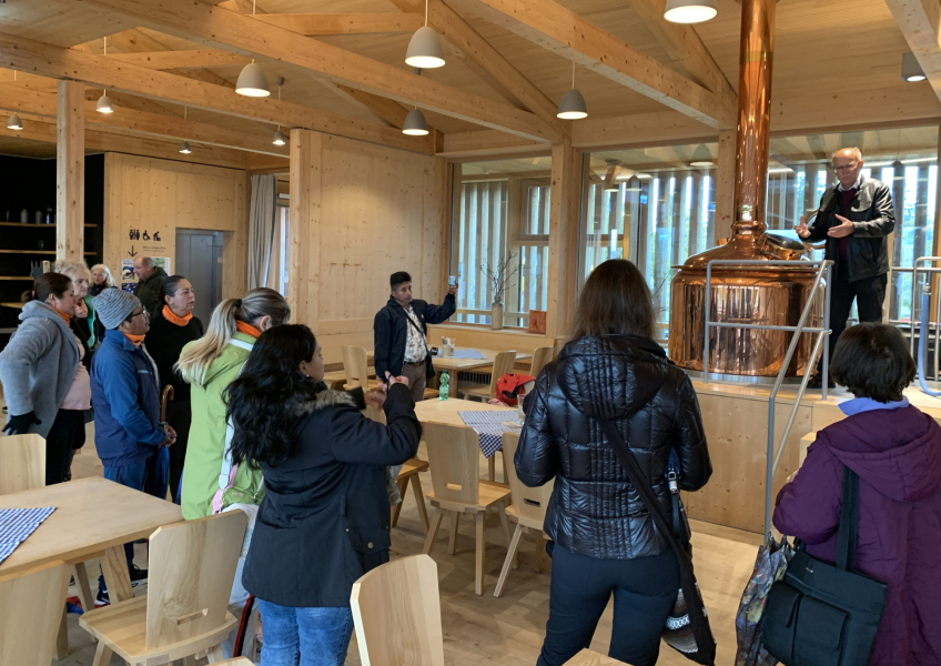 Tags darauf stand die Glentleiten in Großweil auf dem Programm. Begrüßt durch den stellvertretenden Diözesanvorsitzenden Josef Mederer wurde an verschiedenen Bauwerken die Bau- und Lebensweise im Alpenraum der letzten Jahrhunderte übermittelt. Das kaltnasse Wetter mache es ungemütlich, so dass das Mittagessen zum Aufwärmen einen guten Abschluss der Besichtigung bot. Josef Mederer erklärte die dortige kleine Brauerei sowie den Brauvorgang. Anstelle einer Bierverkostung entschieden sich die Gäste für eine heiße Tasse Tee.