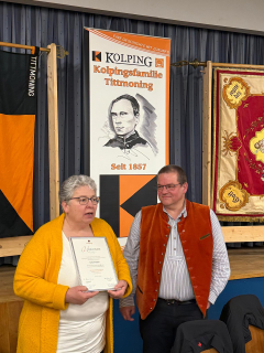Mit einem Rückblick auf die „Highlights“ während der vergangenen 20 Jahre in der Vorstandschaft der Kolpingsfamilie Tittmoning ließ Norbert Köpferl die schönsten Momente noch einmal revuepassieren und überließ sein Amt der Zweiten Vorsitzenden Barbara Danninger.