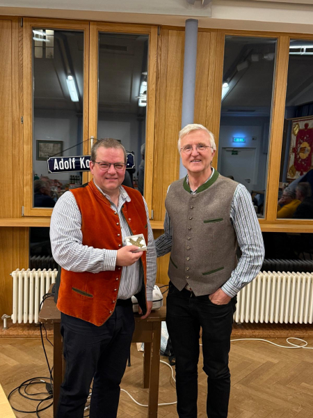 Diesen Worten schloss sich auch Diözesangeschäftsführer Alfred Maier in seinem Grußwort an und wünschte der Kolpingsfamilie Tittmoning weiterhin einen arbeitsfähigen Vorstand. Für die Nachfolge des Ersten Vorsitzenden ermutigte er die Mitglieder, in ein solches Amt hineinzuwachsen: „Wir brauchen keinen zweiten Norbert Köpferl. wer es macht, macht es nach seiner Vorstellung: und das ist gut so“. Mit Bezug auf die politische Situation und den unerwartet schnellen demokratischen Werteverfall, appellierte er an die Mitglieder, dass die Kolpingsfamilie zu ihren Werten stehen müsse. „Die Würde des Menschen ist unantastbar, darüber darf man nicht streiten“, lobte er die Planungen für das Sternenkindergrab in Tittmoning. Mit einem Ausblick auf die Landeswallfahrt am 3. Oktober 2026 lud er die Mitglieder zu diesem Ereignis nach Freising ein.