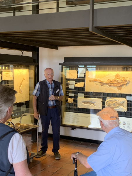 Mit dem Zug ging es nach Eichstätt-Stadt, wo die Kolpingsgeschwister zunächst den Burgberg zur Wilibaldsburg erklommen. Eine Zeitreise führte die Teilnehmenden 150 Millionen Jahre zurück in die Zeit, als die Gegend um Eichstätt unter einem flachen, tropischen Meer lag und sich Fossilien bildeten, die bis heute bestaunt werden können und von denen besonders der Urvogel Archeopteryx Weltruhm erlangt hat. Neben zahlreichen Versteinerungen konnte auch das Eichstätter Korallenriff mit lebenden Fischen bestaunt werden.