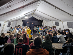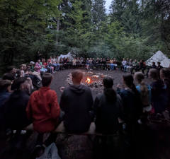 Der Zeltplatz mitten im Wald, mit einem Fluss in der Nähe, bot die perfekte Kulisse für eine Woche voller Abenteuer und Naturerfahrung. Die Kinder lebten in Zelten, gaben ihren Gruppen eigene Namen und entwickelten eine individuelle Identität innerhalb des Dorfes. Gleichzeitig wuchs das Gemeinschaftsgefühl durch gemeinsame Mahlzeiten, thematisch gestaltete Spiele und tägliche Rituale wie Morgen- und Abendlob. Diese spirituellen Impulse halfen dabei, den Tag bewusst zu beginnen und abzuschließen.
