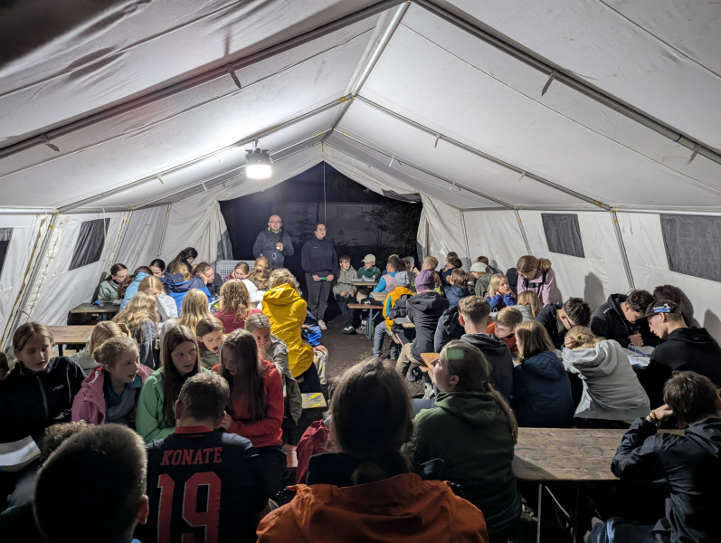 Die Struktur des Lageralltags war klar und unterstützte das Miteinander: Jede Zeltgruppe übernahm Verantwortung für das eigene Geschirr und half im Rotationsprinzip beim Küchenabwasch. So wurde nicht nur Fairness gelebt, sondern auch der Wert gemeinschaftlicher Aufgaben erfahrbar gemacht. Die vegetarische Ernährung während der Woche setzte ein Zeichen für nachhaltigen Umgang mit Ressourcen und regte zum Nachdenken über Konsumverhalten an.