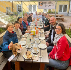 Am Samstag, den 13. September duftete es früh morgens um 8.00 schon wohlig warm nach Kaffee im Innenhof* des Kolpinghauses am Stachus. Alles wurde vorbereitet für ein faires Frühstück.