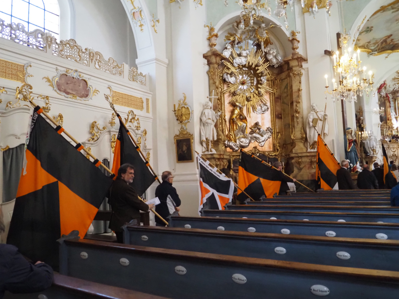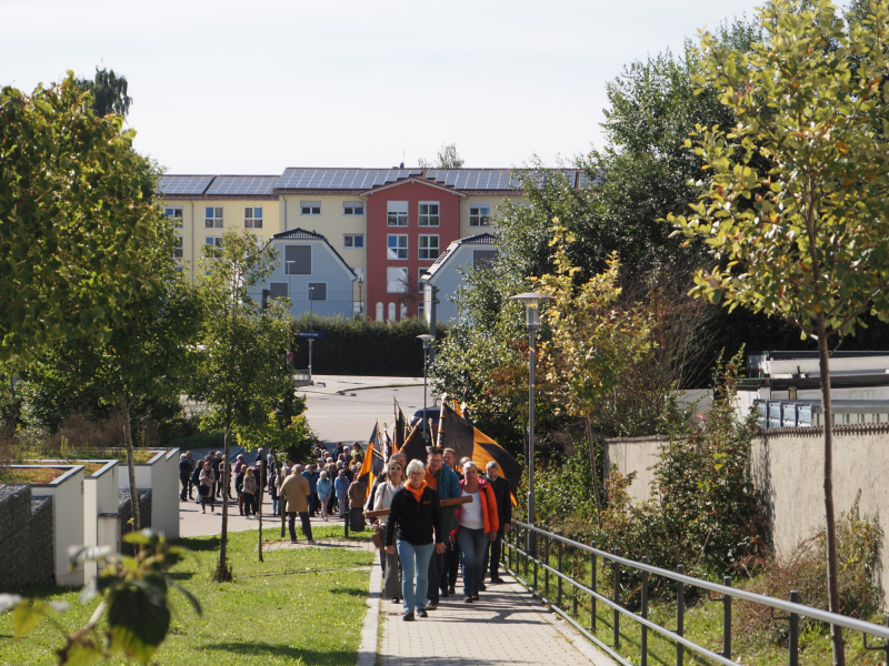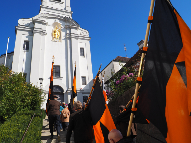 „Bei Kaiserwetter“ bedankte sich Diözesanvorsitzender Emil Schneider bei den über 100 Kolpinggeschwistern, die zur Diözesanwallfahrt nach Altomünster aufgebrochen waren. Ein langer Bannerzug führte von der S-Bahn-Station zur Kirche „St. Alto und Birgitta".