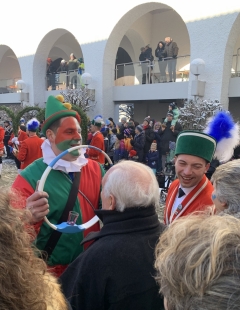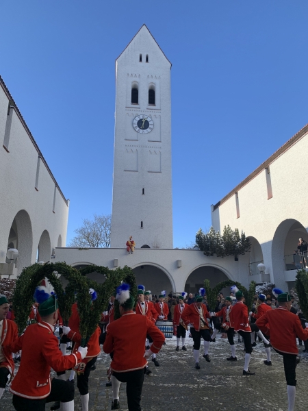 Die Ismaninger Schäffler tanzten für uns und füllten den Platz mit Musik, Brauchtum und echter bayerischer Tradition. Wir bedanken uns herzlich für diesen Auftritt und freuen uns sehr, dass der Schäfflertanz hier bei uns in Ismaning weiterlebt und Menschen zusammenbringt. Die Kasperl tun ja auch einiges dazu, um die Leute zum Lachen und Klatschen zu bringen. Nach dem Tanz gab es noch etwas zur Stärkung und Getränke zum Aufwärmen für alle.
