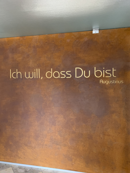 Betritt man die Augustinerkirche in Würzburg, fällt der Blick auf eine goldene Tafel mit der Aufschrift: „Ich will, dass Du bist!“ Dieser Satz greift einen Gedanken des heiligen Augustinus auf.
