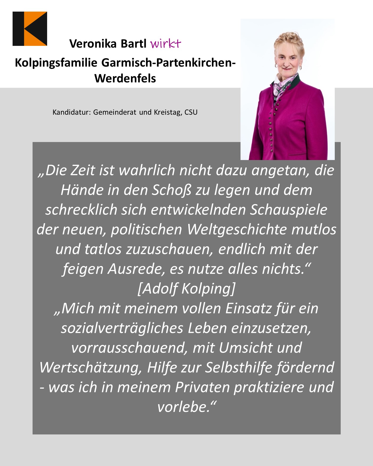 - Veronika Bartl, Kolpingsfamilie Garmisch-Partenkirchen-Werdenfels