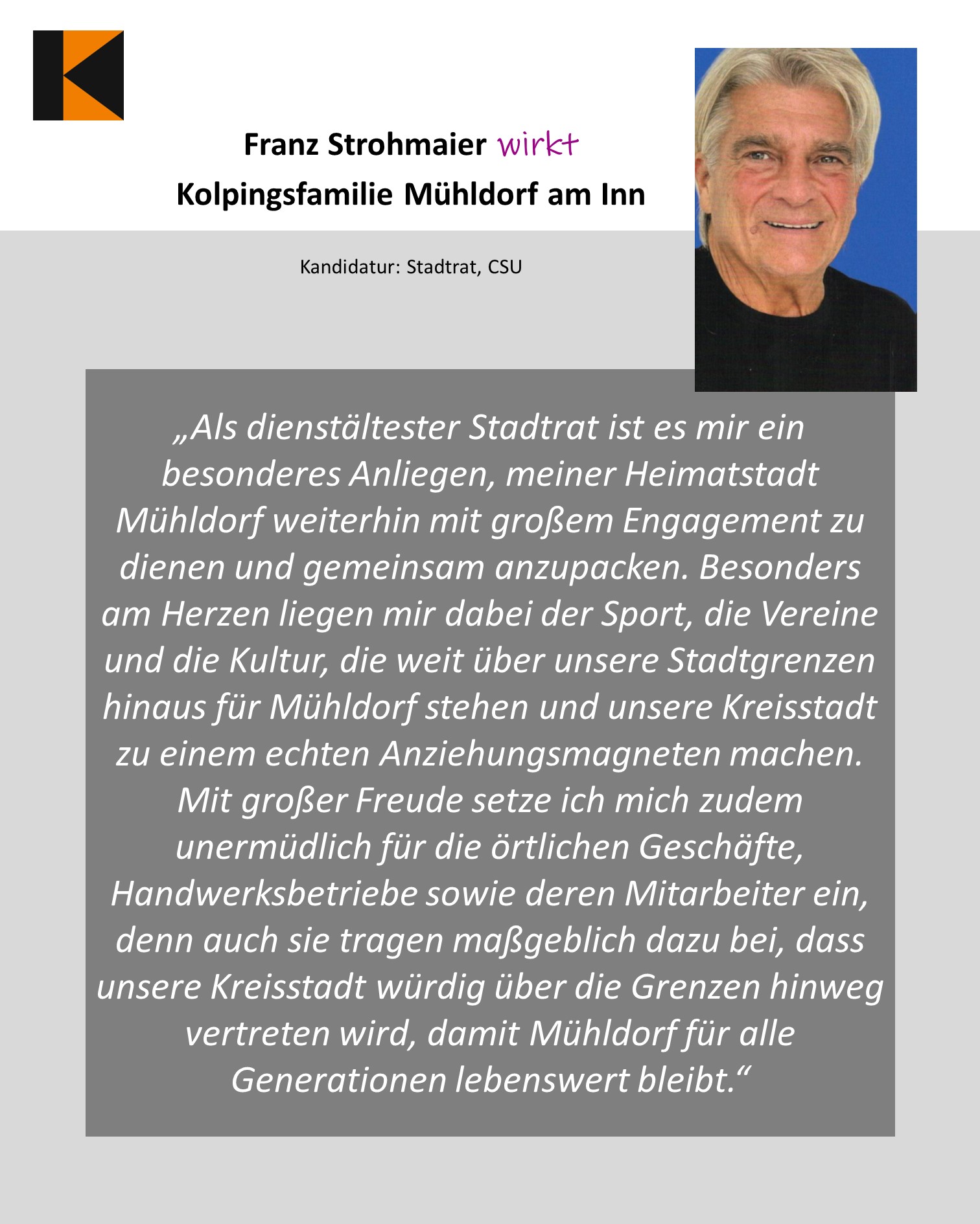 - Franz Strohmaier, Kolpingsfamilie Mühldorf am Inn