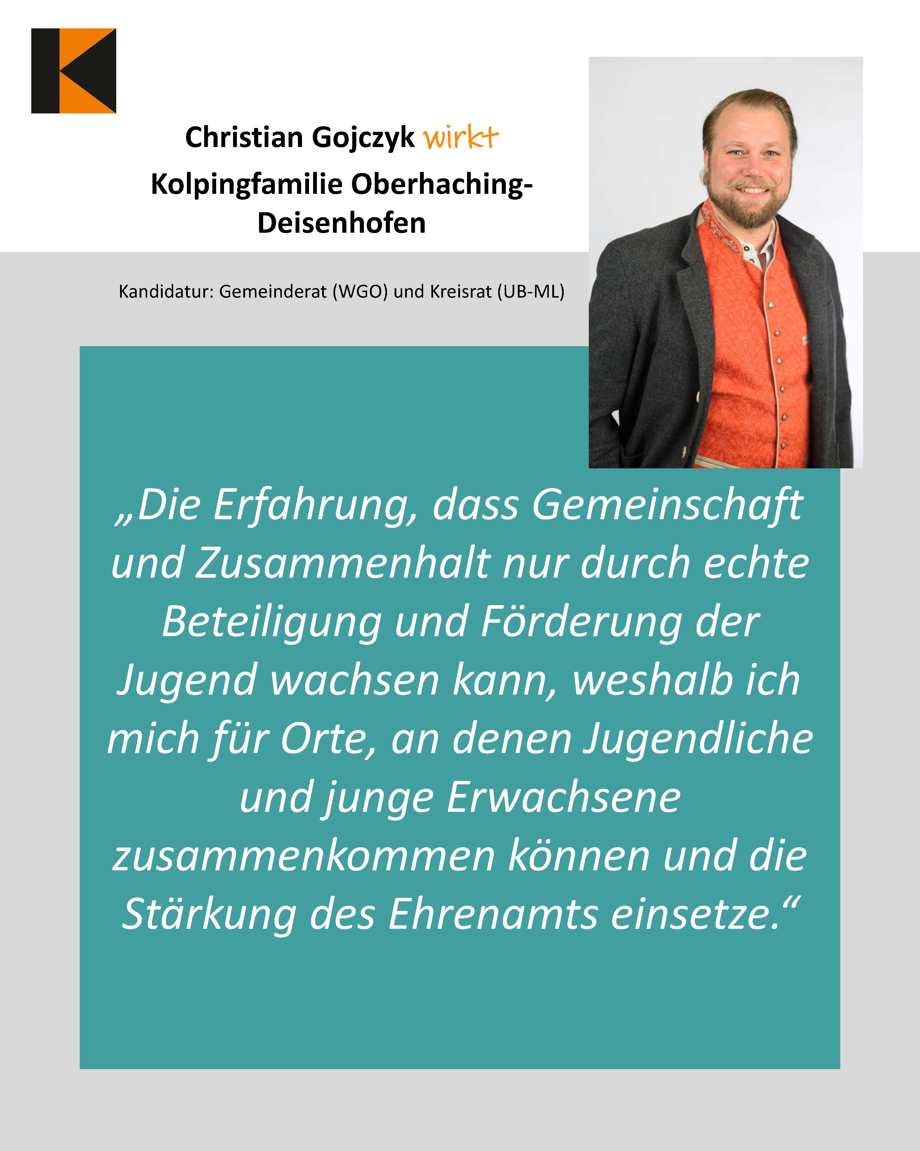 - Christian Gojczyk, Kolpingfamilie Oberhaching-Deisenhofen
