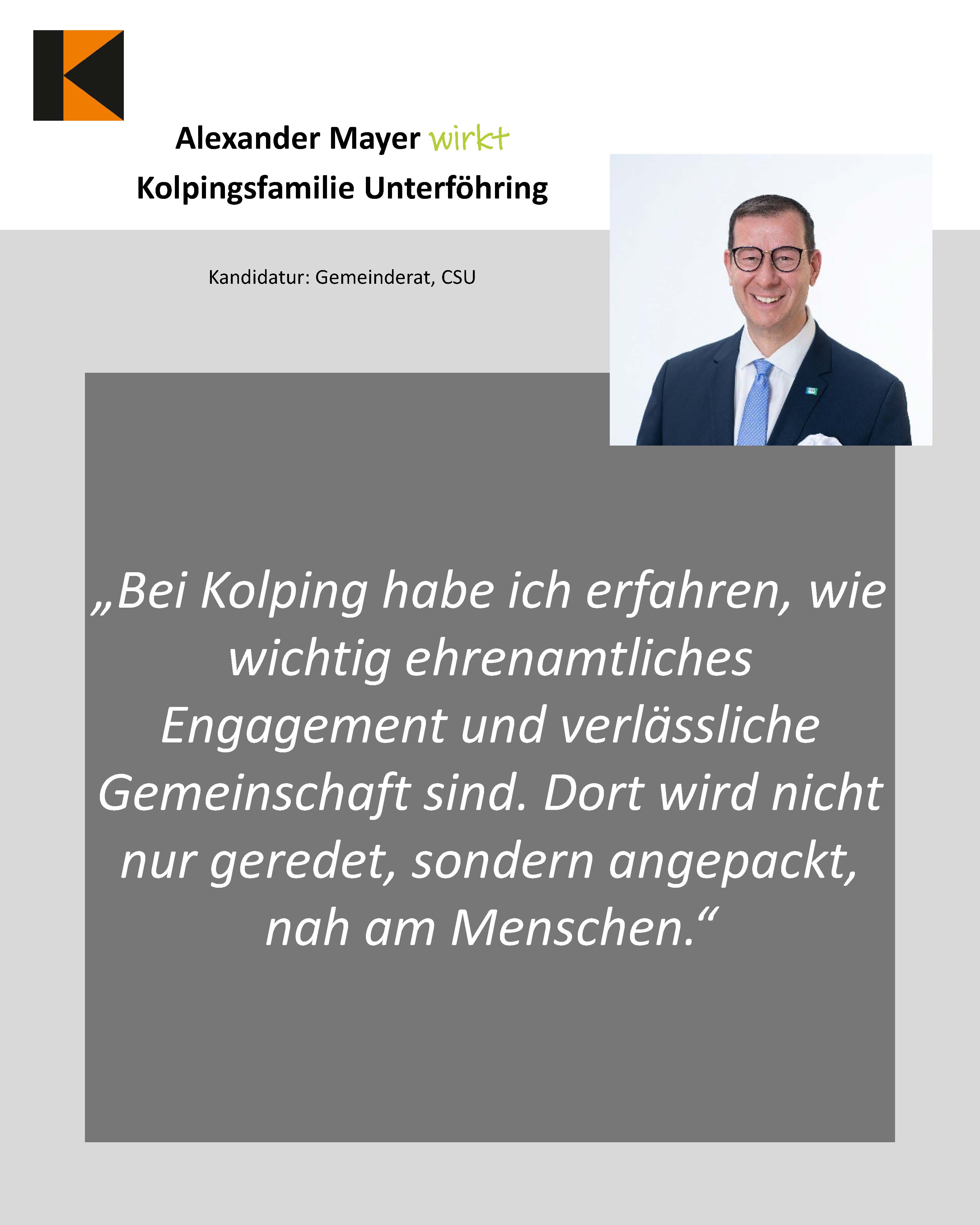 - Alexander Mayer, Kolpingsfamilie Unterföhring