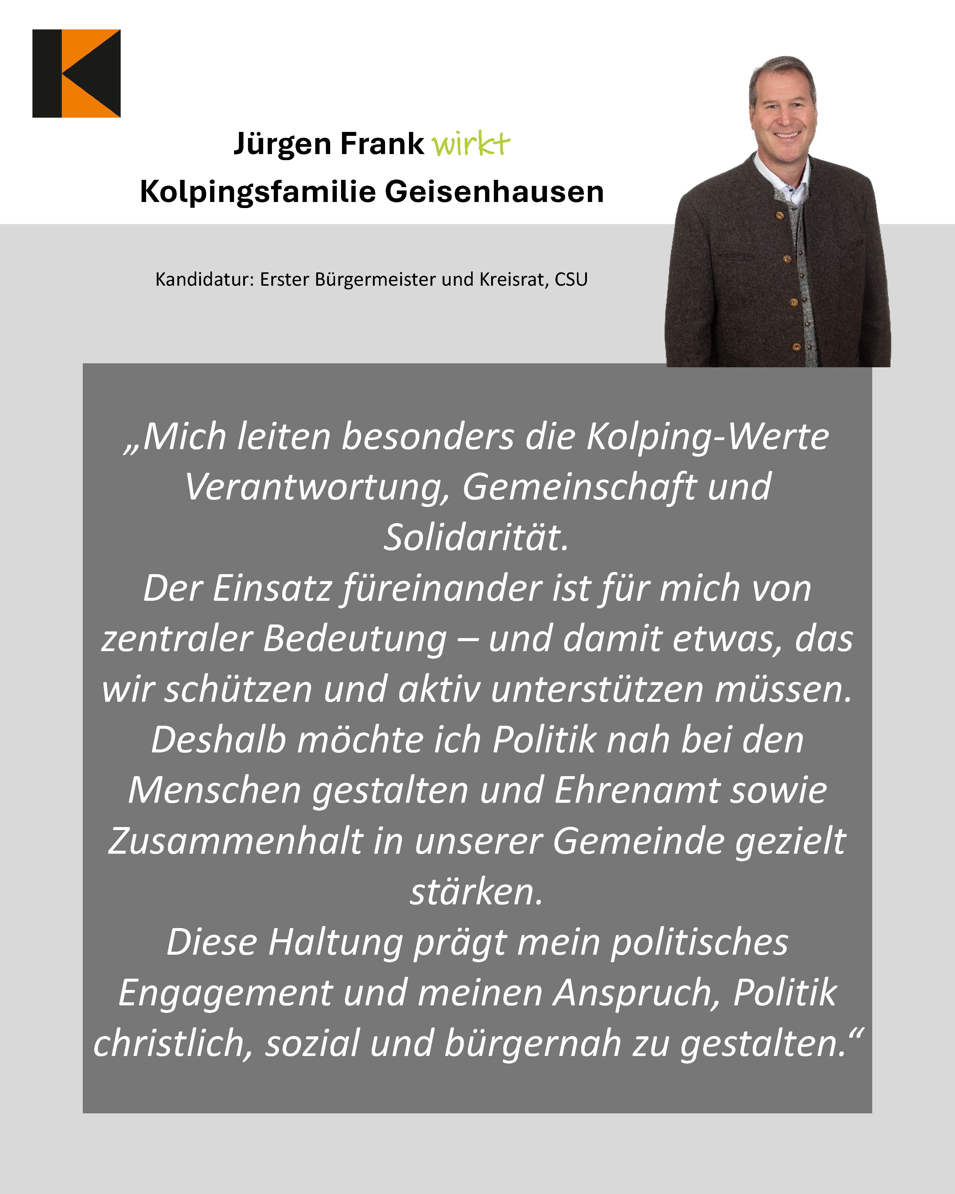 - Jürgen Frank, Kolpingsfamilie Geisenhausen