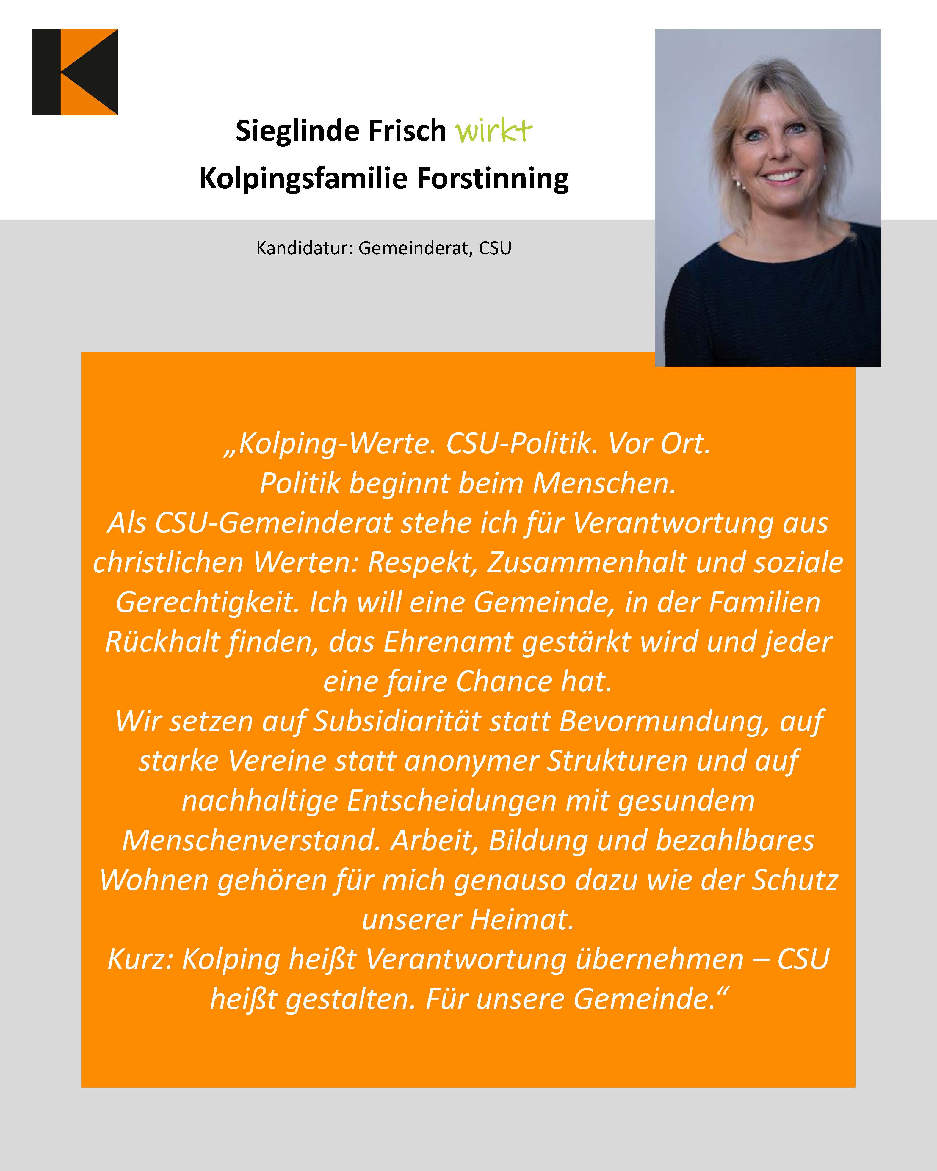 - Sieglinde Frisch, Kolpingsfamilie Forstinning