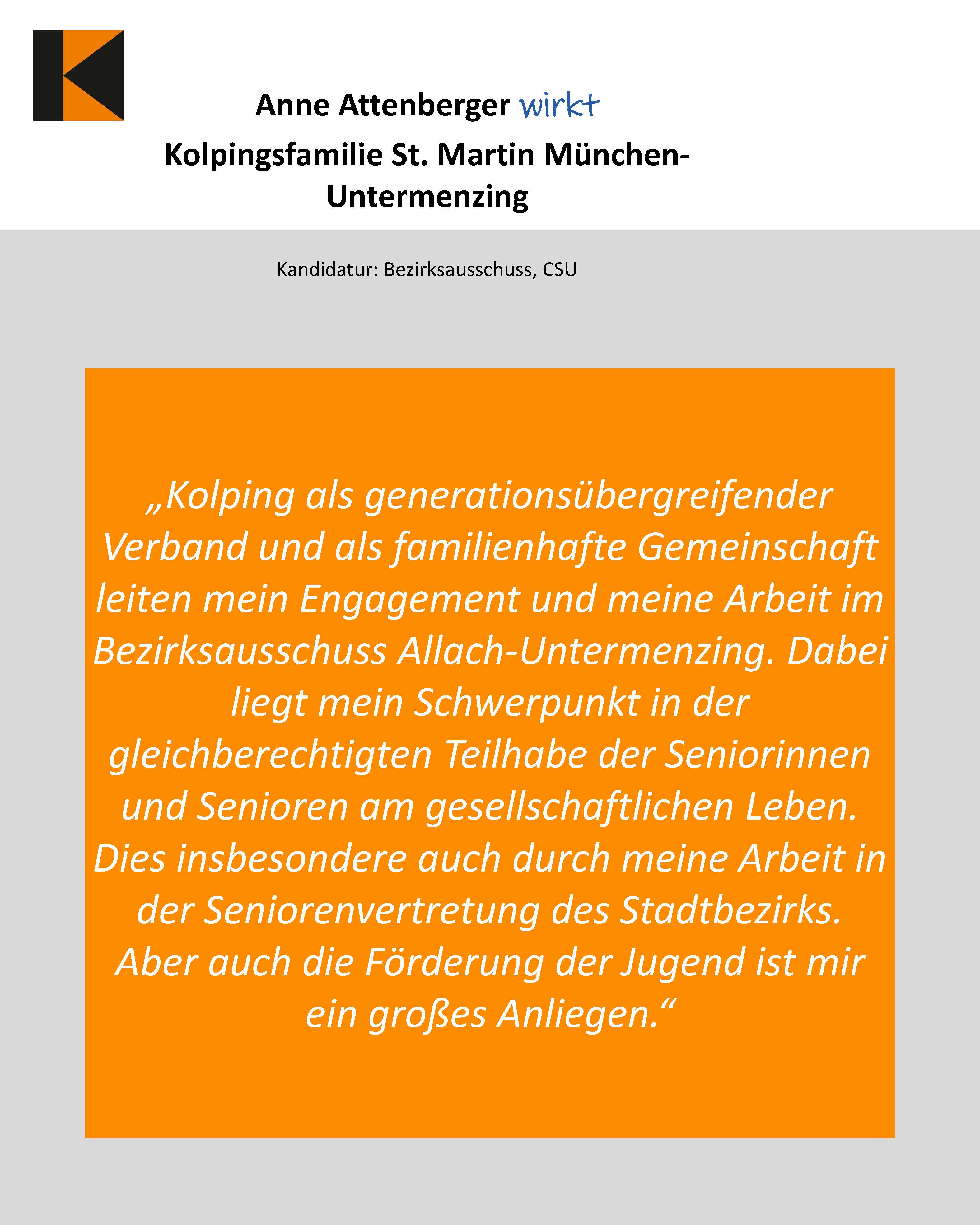 - Anne Attenberger, Kolpingsfamilie St. Martin München-Untermenzing