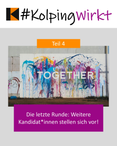 Wichtig ist zu erwähnen, dass es uns nicht um Parteipolitik geht. Wir bevorzugen keine bestimmte demokratische Partei, sondern präsentieren die Bandbreite unseres Kolpingengagements und vor allem die Kolpinggeschwister, die diesem Engagement ein Gesicht geben – auch wenn sie womöglich nicht in das angestrebte Amt gewählt werden. Auch das ist Demokratie, dass trotz einer Niederlage das gesellschaftliche Wirken weitergeht.